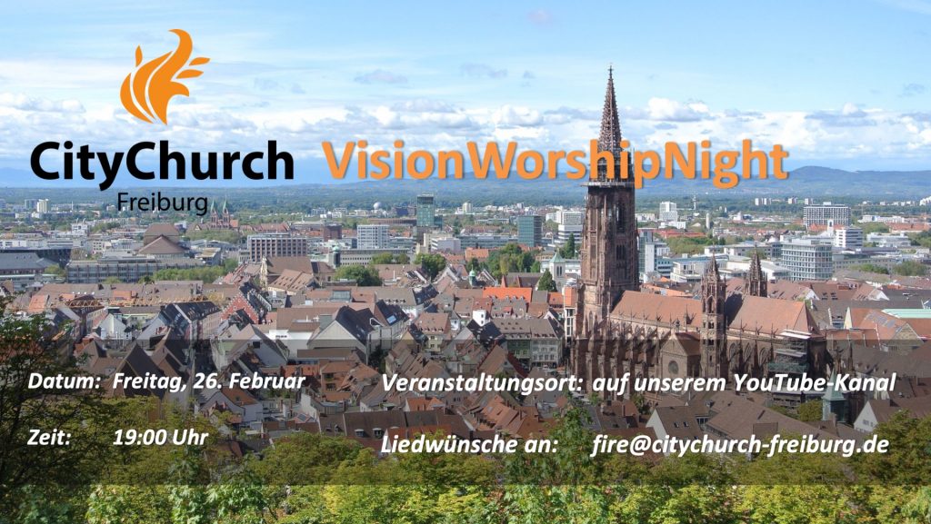 Herzliche Einladung zu unserer ersten Online VisionWorshipNight am Freitag, 26.02.2021 um 19 Uhr. Es ist ein Testlauf und wir sind sehr gespannt, ob alles funktioniert. :-) Beten, anbeten und gemeinsam … CityChurch VisionWorshipNight – online weiterlesen